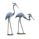 Ancient Graffiti Standing and Bowing Steel Heron Pair Outdoor Decor
