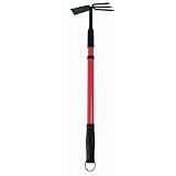 LH016 Features: -Cultivator and hoe.-Durable heat treated heads.-Rust resistant powder coated paint.-Comfortable soft non-slip grip.-Metal ring for convenient hanging storage.-Strong lightweight steel handles.-Extra reach and leverage. Dimensions: -Depth: 25” – 37”.