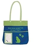 Every cat deserves his/her own tote bag. Whether you use it for taking the cat to the vet or just to store his/her toys in, you will enjoy the functionality of this tote. You can even use it for yourself just to show off your cat’s pictures to the world. This beautiful lime green and cobalt blue tote is water repellant, making it a great item for many purposes such a toy bag for cat toys, a diaper bag, garden tote, or an everyday tote for you to carry everywhere. It reads Cats Leave Pawprints on your Heart in lime green lettering over the cobalt blue.. Two outer pockets on the front also allow for additional space and a zippered pocket on the back side makes for more secure space. Add your kitty picture for all to see and you will receive many complements on how fun and functional this tote can be! It is 14 inches tall x 13.5 inches wide and 3 inches deep. The 11 inch long handles makes for easy shoulder carrying. It is made of 100% polyester and lined with vinyl.