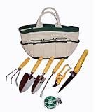 This master craft eight-piece garden tool and tote set includes everything you need for those gardening and landscaping projects. The garden tools fit conveniently in the attractive canvas tote so you can easily transport your tools as needed. The eight-piece set includes: 8-inch by-pass pruner with black finished blades and aluminum handle, 12-1/2-inch fixed blade grass shear with black finished blades, 4-piece chrome plated steel digging tools with lacquered hardwood handles: 10-1/2-inch trowel, 10-3/4-inch transplanter, 8-1/2-inch cultivator, 12-inch weeder, 20 meter green vinyl coated twist tie wire with reel and cutter. The canvas tote is constructed of heavy weight cotton with pockets and elastic straps to store and secure the tools. Item #ga2027t-ph